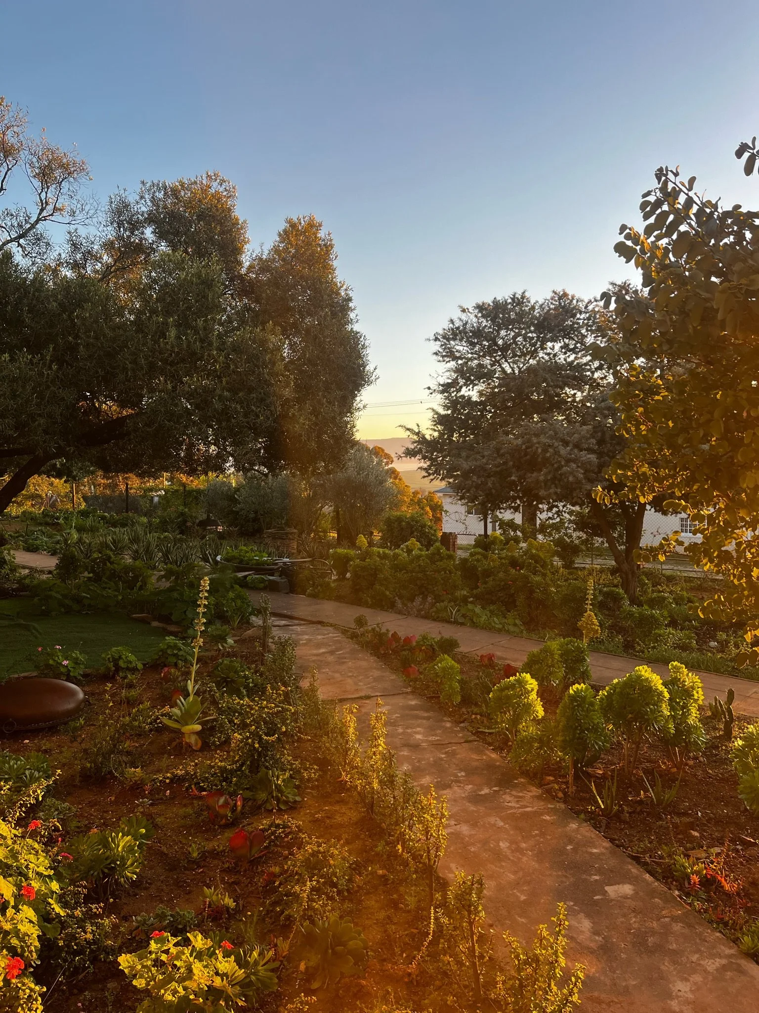 Throughout the day, the garden shifts with the light. Mornings are calm and bright, afternoons warm and still, and evenings settle into a peaceful hush as the sun drops.